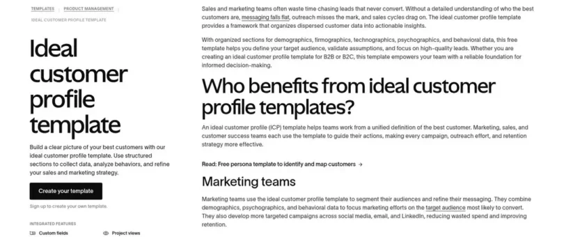 Asana transforms your ICP definition from a static page into an actionable workflow. You can map specific customer pain points directly to tasks, assigning content creation or sales outreach to specific team members. This is the best option for teams that need to tie their profile directly to daily project execution.